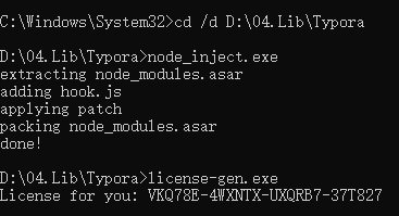 - 多次激活失败,可在不运行Typora的情况下运行CMD,获取新的序列号;